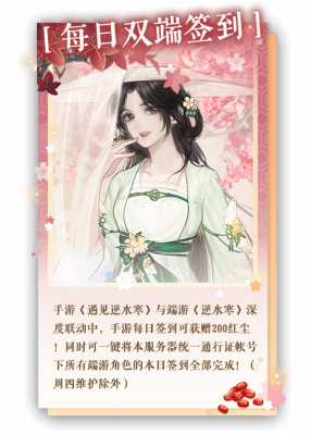 在手機游戲《遇見逆水寒》和終端游戲《逆水寒》的深度聯動中,手機游戲每天簽到時會收到200紅塵!同時,該服務器統一通行證賬號下所有游戲端角色的登錄,一鍵完成!(周四維護除外)