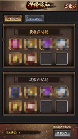 2.個(gè)人獎(jiǎng)勵(lì):200名在兩個(gè)對(duì)立區(qū)域參賽的選手根據(jù)活動(dòng)分?jǐn)?shù)進(jìn)行排名,活動(dòng)結(jié)束時(shí)可獲得相應(yīng)的個(gè)人排名獎(jiǎng)勵(lì);
