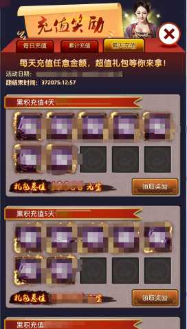 【充值獎(jiǎng)勵(lì)】中新增【累天充值】活動(dòng),活動(dòng)期間不管你充多少,只要你充值,就能領(lǐng)取超值禮包,充值天數(shù)越多,禮包月豐厚哦~