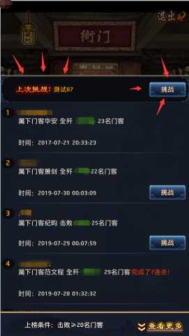 3.新增衙門上次挑戰(zhàn)功能