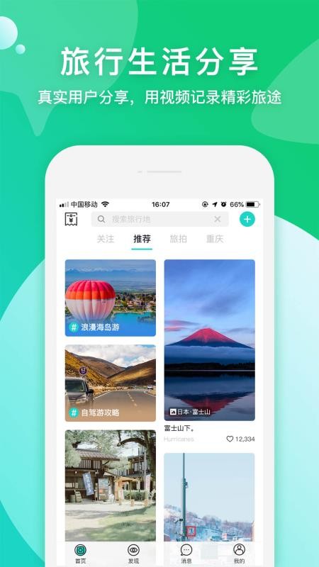《如旅 手機版》 是一款實用的旅游分享手機軟件,可以分享真實的旅游記錄和趨勢,讓所有的旅游美景都能清晰記錄,真正做到共享和吸引人。它還可以與游客互動,分享更多新的景點和事物,用視頻記錄精彩的旅行。哦,那就下載吧。