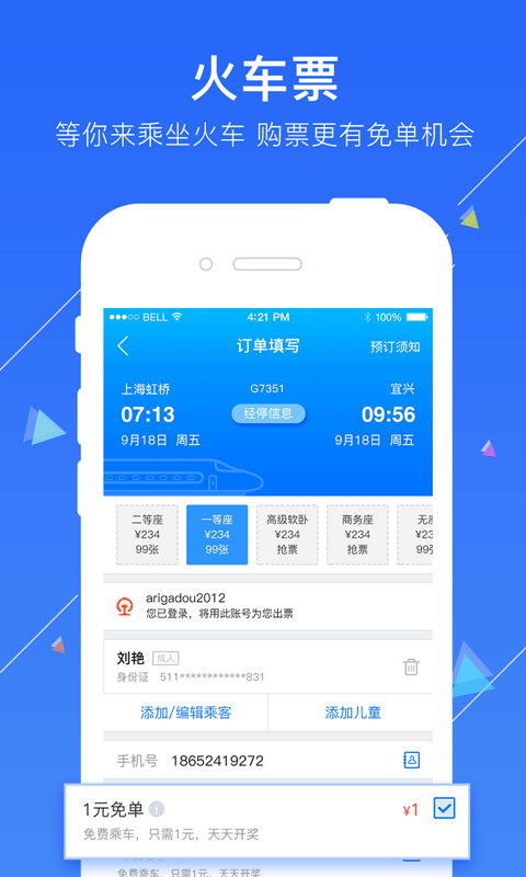 2.【火車票】全國火車票可隨意預訂,讓出行更省心;