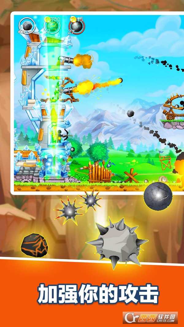 2.借助塔頂的彈射器,向對手投擲石頭、炮彈、炸彈、箭和魔法炮彈。