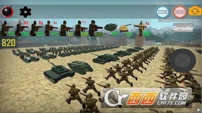 敵方納粹軍隊用軍用戰(zhàn)車襲擊了你的基地和你的基地,士兵們把它變成了戰(zhàn)場。敵人在一個充滿爆炸性武器的激烈戰(zhàn)場上。你一般需要以最好的方式消滅致命野獸,徹底摧毀它們的軍事基地才能占領(lǐng)敵方基地。
