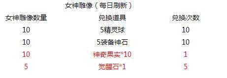 活動內容:玩家在冒險所有副本中推圖,將有大概率掉落女神雕像,女神雕像可在活動中心兌換道具哦!