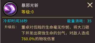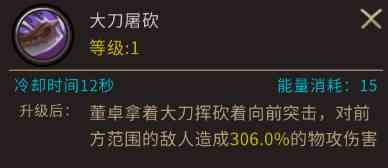 作為一個(gè)有一定韌性的英雄,董卓的招式與武器大刀相當(dāng)符合,基本都是豁達(dá)的招式。你們不需要去尋找對(duì)方的弱點(diǎn),只要把它們砍了就行了~