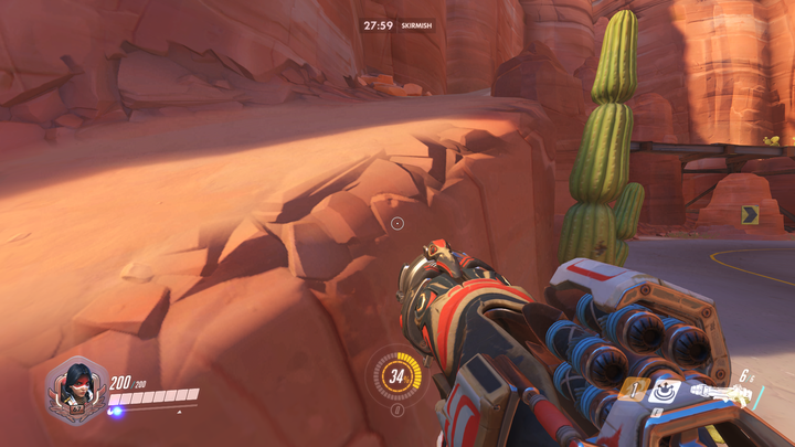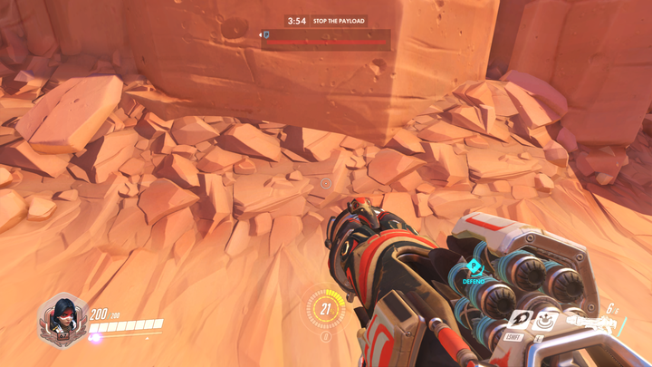 上圖遮住陽光的那個尖石塊形成了下圖的這個陰影,但是即使離這么遠,這個影子邊緣依然硬朗。這一點是反自然的,但是卻是《守望先鋒》獨特美術風格中的一環。